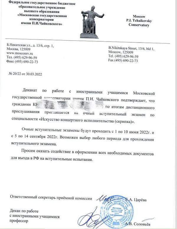 錄取:柴可夫斯基音樂學(xué)院專家制預(yù)科錄取