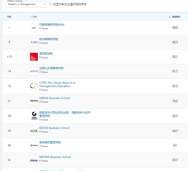 目前該學(xué)校在MIM領(lǐng)域法國(guó)排名第10,全球排名52。
