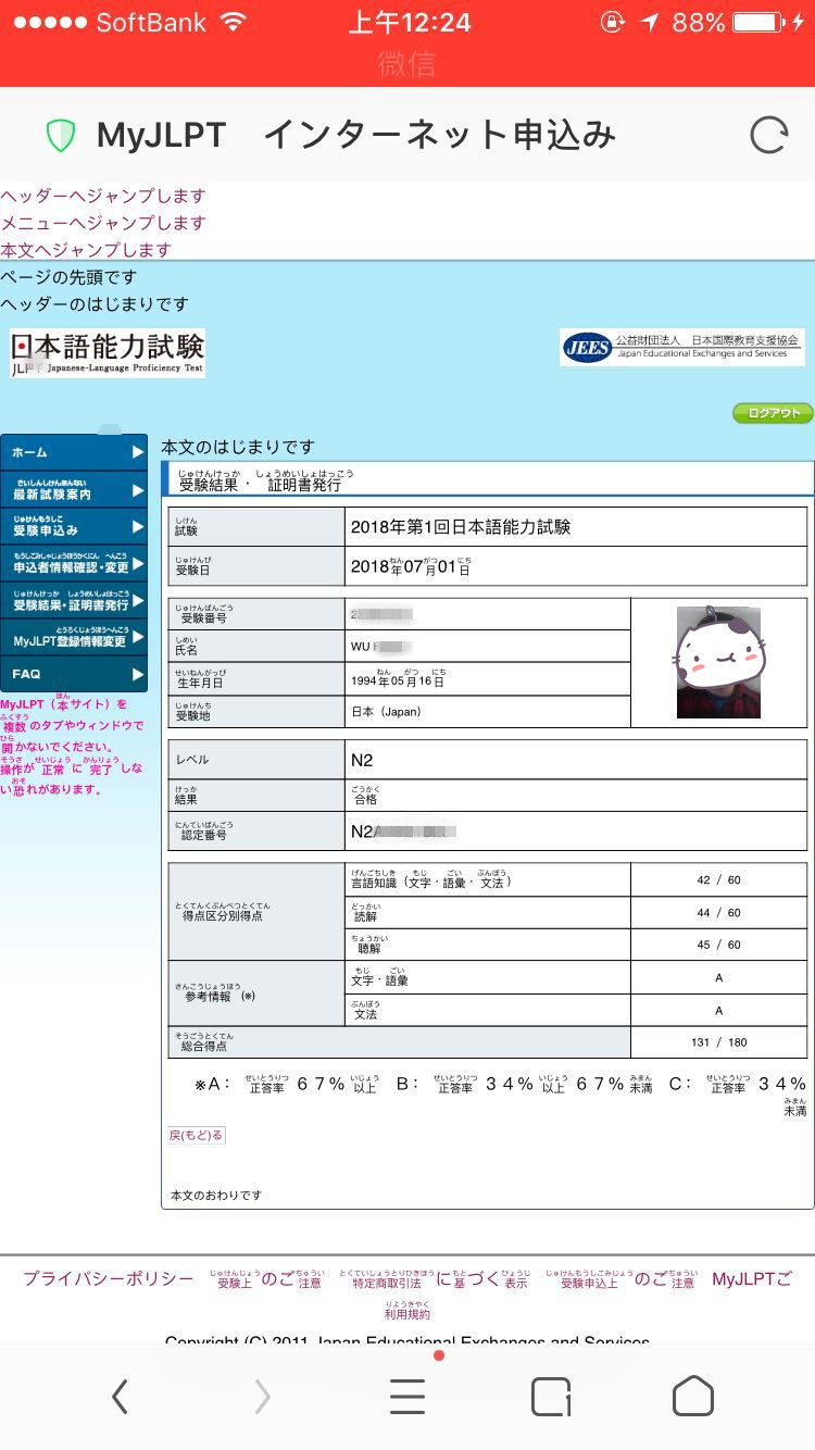 考試類型:JLPT-N1所報課程:出國班