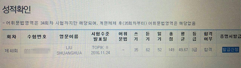 您現(xiàn)在的位置:韓語首頁韓國(guó)學(xué)員成績(jī)